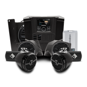 The Stage 4 kit is the complete package that combines the Stage 3 kit with our rear speaker option. Adding our RM1 series mini speaker enclosure and clamp system, this kit adds the last bit of sound that you need. Simply plug in the harness, mount the speakers and rock out. Whether hitting the dunes or the trails, you are sure to be the center of attention of any get-together.