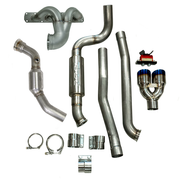 The ZZPerformance NA Rear Exit Exhaust Package is like nothing else on the market.  We don’t use aluminized mild steel like the competitors.  We use 304 stainless tubing.  We start off with our proven stainless Slingshot header.  The header easily connects to the exhaust with a V-Band which does not require a gasket.  We use a 3” down pipe which is larger than any other company uses.  We then neck down to 2.5” to pass through the trans tunnel and exit out the back, through our ZZP resonator, and ending at a high mount dual exit tip.  The exhaust produces a deep throaty exotic sound unlike anything else available.  This kit also comes with a new upgraded transmission mount and a license plate relocation kit.  Going to the drag strip and want zero restriction or just more sound from your exhaust?  No problem, this is the only modular exhaust on the market. Add our drag tip which removes everything from the resonator back and exits low at the back.  It takes less than 2 minutes to go from street to drag. If down the road you decide to upgrade to our turbo system, ZZP has you covered.  We designed this exhaust to be interchangeable with both setups and the down pipe in this kit will connect right to the turbo in our turbo kit.  Every exhaust is hand made here in the USA at ZZP on our CNC mandrel bender.