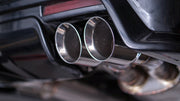 2016-19 Stainless Works, Cadillac CTS-V Sedan axleback exhaust system featuring 3" mandrel bent tubing into Dual-Mode Turbo mufflers with 4" diameter quad slash cut tips. Performance Connect option fits to Stainless Works' Headers for a complete 3" diameter Performance System. From there the exhaust travels into our crossover x-pipe with resonators. Includes functional Dual-Mode Performance valves in the tips which operate in conjunction with Tour and Track modes.