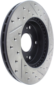 StopTech Drilled and Slotted Sport Rotors are 1-piece direct replacement brake discs for factory brake systems and stock calipers that look great behind your wheels – and offer significantly improved braking performance. The unique cross-drilling and slotting aids with heat and brake dust dispersal; prevents glazing of the pads; adds bite and improves wet and dry braking performance. Built to last; the black e-coating provides protection from corrosion and the high carbon metallurgy (in most applications) offers quieter operation; better crack resistance and increased performance.