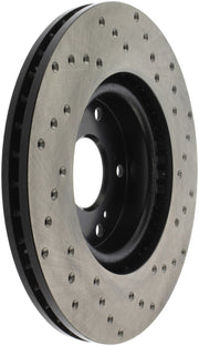 StopTech Drilled Sport Rotors are 1-piece direct replacement brake discs for factory brake systems and stock calipers that look great behind your wheels – and offer significantly improved braking performance. The unique cross-drilling aids with heat and brake dust dispersal; prevents glazing of the pads; adds bite and improves wet and dry braking performance. Built to last; the black e-coating provides protection from corrosion and the high carbon metallurgy (in most applications) offers quieter operation; better crack resistance and increased performance.