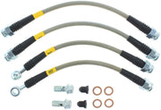 StopTech Stainless Steel Braided Brake Lines provide a quicker; firmer; more consistent pedal response by maintaining consistent brake pressure. Additionally; stainless steel lines provide precision brake modulation; especially during threshold braking. The improvement in pedal feel is more dramatic on older vehicles where the factory rubber line may have softened and swelled due to age. A variety of end fittings are available to meet application needs. All fittings are engineered for proper fit and durability. All necessary brackets and fasteners are included with each line kit.