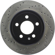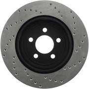 StopTech Drilled Sport Rotors are 1-piece direct replacement brake discs for factory brake systems and stock calipers that look great behind your wheels – and offer significantly improved braking performance. The unique cross-drilling aids with heat and brake dust dispersal; prevents glazing of the pads; adds bite and improves wet and dry braking performance. Built to last; the black e-coating provides protection from corrosion and the high carbon metallurgy (in most applications) offers quieter operation; better crack resistance and increased performance.