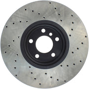StopTech Drilled Sport Rotors are 1-piece direct replacement brake discs for factory brake systems and stock calipers that look great behind your wheels – and offer significantly improved braking performance. The unique cross-drilling aids with heat and brake dust dispersal; prevents glazing of the pads; adds bite and improves wet and dry braking performance. Built to last; the black e-coating provides protection from corrosion and the high carbon metallurgy (in most applications) offers quieter operation; better crack resistance and increased performance.