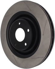 StopTech Slotted Sport Rotors are 1-piece direct replacement brake discs for factory brake systems and stock calipers that look great behind your wheels – and offer significantly improved braking performance. The unique slotting aids with heat and brake dust dispersal; prevents glazing of the pads; adds bite and improves wet and dry braking performance. Built to last; the black e-coating provides protection from corrosion and the high carbon metallurgy (in most applications) offers quieter operation; better crack resistance and increased performance.