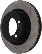 StopTech Slotted Sport Rotors are 1-piece direct replacement brake discs for factory brake systems and stock calipers that look great behind your wheels – and offer significantly improved braking performance. The unique slotting aids with heat and brake dust dispersal; prevents glazing of the pads; adds bite and improves wet and dry braking performance. Built to last; the black e-coating provides protection from corrosion and the high carbon metallurgy (in most applications) offers quieter operation; better crack resistance and increased performance.