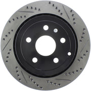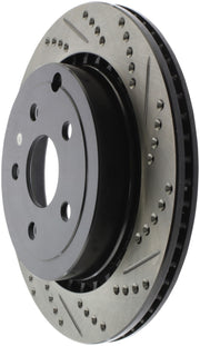 StopTech Drilled and Slotted Sport Rotors are 1-piece direct replacement brake discs for factory brake systems and stock calipers that look great behind your wheels – and offer significantly improved braking performance. The unique cross-drilling and slotting aids with heat and brake dust dispersal; prevents glazing of the pads; adds bite and improves wet and dry braking performance. Built to last; the black e-coating provides protection from corrosion and the high carbon metallurgy (in most applications) offers quieter operation; better crack resistance and increased performance.
