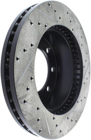 StopTech Drilled and Slotted Sport Rotors are 1-piece direct replacement brake discs for factory brake systems and stock calipers that look great behind your wheels – and offer significantly improved braking performance. The unique cross-drilling and slotting aids with heat and brake dust dispersal; prevents glazing of the pads; adds bite and improves wet and dry braking performance. Built to last; the black e-coating provides protection from corrosion and the high carbon metallurgy (in most applications) offers quieter operation; better crack resistance and increased performance.