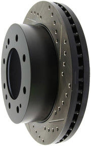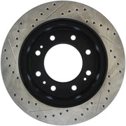 StopTech Drilled and Slotted Sport Rotors are 1-piece direct replacement brake discs for factory brake systems and stock calipers that look great behind your wheels – and offer significantly improved braking performance. The unique cross-drilling and slotting aids with heat and brake dust dispersal; prevents glazing of the pads; adds bite and improves wet and dry braking performance. Built to last; the black e-coating provides protection from corrosion and the high carbon metallurgy (in most applications) offers quieter operation; better crack resistance and increased performance.