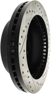 StopTech Drilled and Slotted Sport Rotors are 1-piece direct replacement brake discs for factory brake systems and stock calipers that look great behind your wheels – and offer significantly improved braking performance. The unique cross-drilling and slotting aids with heat and brake dust dispersal; prevents glazing of the pads; adds bite and improves wet and dry braking performance. Built to last; the black e-coating provides protection from corrosion and the high carbon metallurgy (in most applications) offers quieter operation; better crack resistance and increased performance.