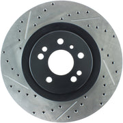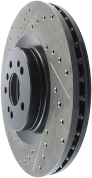 StopTech Drilled and Slotted Sport Rotors are 1-piece direct replacement brake discs for factory brake systems and stock calipers that look great behind your wheels – and offer significantly improved braking performance. The unique cross-drilling and slotting aids with heat and brake dust dispersal; prevents glazing of the pads; adds bite and improves wet and dry braking performance. Built to last; the black e-coating provides protection from corrosion and the high carbon metallurgy (in most applications) offers quieter operation; better crack resistance and increased performance.
