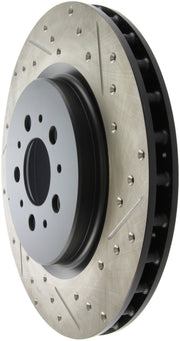 StopTech Drilled and Slotted Sport Rotors are 1-piece direct replacement brake discs for factory brake systems and stock calipers that look great behind your wheels – and offer significantly improved braking performance. The unique cross-drilling and slotting aids with heat and brake dust dispersal; prevents glazing of the pads; adds bite and improves wet and dry braking performance. Built to last; the black e-coating provides protection from corrosion and the high carbon metallurgy (in most applications) offers quieter operation; better crack resistance and increased performance.