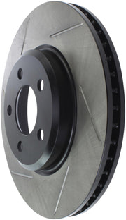 StopTech Slotted Sport Rotors are 1-piece direct replacement brake discs for factory brake systems and stock calipers that look great behind your wheels – and offer significantly improved braking performance. The unique slotting aids with heat and brake dust dispersal; prevents glazing of the pads; adds bite and improves wet and dry braking performance. Built to last; the black e-coating provides protection from corrosion and the high carbon metallurgy (in most applications) offers quieter operation; better crack resistance and increased performance.