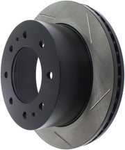StopTech Slotted Sport Rotors are 1-piece direct replacement brake discs for factory brake systems and stock calipers that look great behind your wheels – and offer significantly improved braking performance. The unique slotting aids with heat and brake dust dispersal; prevents glazing of the pads; adds bite and improves wet and dry braking performance. Built to last; the black e-coating provides protection from corrosion and the high carbon metallurgy (in most applications) offers quieter operation; better crack resistance and increased performance.