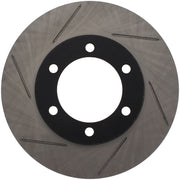StopTech Slotted Sport Rotors are 1-piece direct replacement brake discs for factory brake systems and stock calipers that look great behind your wheels – and offer significantly improved braking performance. The unique slotting aids with heat and brake dust dispersal; prevents glazing of the pads; adds bite and improves wet and dry braking performance. Built to last; the black e-coating provides protection from corrosion and the high carbon metallurgy (in most applications) offers quieter operation; better crack resistance and increased performance.