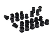 These bushings are often overlooked when upgrading the suspension of a 4WD. Leaf spring bushings stabilize the movement of the rear axle. Inferior, worn or damaged bushings in this area will cause the solid rear axle to move and impart rear end passive steer to the vehicle. It also causes the vehicle to "wander" all over the road and be unstable under heavy braking. This can be especially noticeable carrying a load or towing a boat, RV or any significant trailer. The OE rubber bushings are designed to work at standard ride height with standard wheels and tires and with standard loads. By fitting SuperPro Bushings the rear end of your 4WD will handle just about anything you can throw at it!