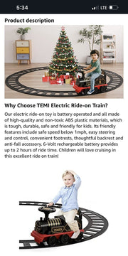 The TEMI Ride On Train Set: All-in-One Track and Train Experience is the ultimate ride-on toy for your little adventurer. This brand new, unopened box contains everything your child needs to embark on an exciting train journey. With its captivating train theme, this toy is perfect for children aged 3 and up.Key Features:- All-in-one track and train experience- Brand new, unopened box- Captivating train themeProduct Specifications:- Brand: Temi- Theme: Trains- Recommended Age Range: 3+Immerse your child in a world of imagination and exploration with the TEMI Ride On Train Set. This all-in-one track and train experience will provide endless hours of fun and excitement. The brand new, unopened box ensures that your child will be the first to embark on this thrilling adventure.With its captivating train theme, this ride on train toy is perfect for children aged 3 and up. Let their imagination run wild as they take control of the train and navigate through the track. The TEMI Ride On Train Set is designed to provide a safe and enjoyable experience for your child.The brand, Temi, is known for its high-quality toys that inspire creativity and promote learning through play. With the TEMI Ride On Train Set, your child will develop important skills such as hand-eye coordination and problem-solving while having a blast.Get ready for an unforgettable ride-on adventure with the TEMI Ride On Train Set: All-in-One Track and Train Experience. Order now and watch as your child's imagination takes off on this thrilling train journey.