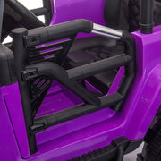 TOBBI 12V Kids Electric Truck with Remote Control, Music, and Horn - Fun Ride-On Car for Children Introducing the TOBBI 12V Kids Electric Truck with Remote Control, Music, and Horn. This battery-powered ride-on truck features a stylish Wrangler look with bright LED lights, accessible magnet doors, and an integrated MP3 player. It's the perfect car toy for your little driver to hit the streets in style. Key Features: Moving forward and backward with in-car control by the pedal and steering wheel Ergonomic seat with a safety harness 4 shock-absorbing large wheels for a smooth and safe ride 12V UL-certificated rechargeable battery for a long-lasting cruise Constructed with toughened kid-friendly plastic for durability Integrated MP3 player with adjustable volume Kids manual operation and parent remote control for maximum safety Dual motor vehicle built with 4 spring-suspension knobby wheels USB port and TF slot allow you to connect your own device Maximum speed of 3.7mph for smooth driving around the house Product Specifications: Color: Purple Material: PP + Iron Net Weight: 45.2 lbs Overall Dimension: 46.45"L x 31.1"W x 28.89"H Maximum Weight Capacity: 66 lbs Recommended Age Range: 3-6 years old Motor: Twin 12V Battery: 12V 7AH Charger: 12V 1000MA Charging Time: 8-12 hours Speed: 1.86-3.73 mph Suitable Battery for RC: AAA 1.5V x 2 (not included) Get ready for an outdoor adventure with the TOBBI 12V Kids Electric Truck. This rc ride on car is the perfect gift for toddlers aged 3-6 years old. With its stylish design and exciting features, your little one will have a blast driving around in their very own truck. The 12V UL-certificated rechargeable battery ensures a long-lasting cruise, while the toughened kid-friendly plastic construction makes it durable for long-term use. Let your child enjoy their favorite music and stories with the integrated MP3 player, and rest assured knowing that you can also control the truck with the parent remote control for maximum safety. The dual motor vehicle is built with 4 spring-suspension knobby wheels, providing a smooth and comfortable ride. Plus, the USB port and TF slot allow you to connect your own device for even more entertainment options. With a maximum speed of 3.7mph, your child can confidently drive around the house and explore their surroundings. So, let your little driver embark on a thrilling ride-on adventure with the TOBBI 12V Kids Electric Truck!