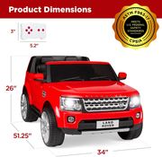 The Top Pick Products 12V 3.7 MPH Double Rider Licensed Land Rover Electric Car Toy Introducing the Top Pick Products 12V 3.7 MPH Double Rider Licensed Land Rover Electric Car Toy - a thrilling ride-on experience for your little ones! With its vibrant red color, this officially-licensed Land Rover ride-on is sure to turn heads as your child cruises through the neighborhood in style. Two-Seater Design for Double the Fun Double seating allows your child to comfortably cruise in the vehicle and bring a friend or sibling along for the ride Manual and Remote Control Options Let your child take control and drive manually or use the 2.4GHz remote control to safely guide them when necessary The remote control features forward/reverse controls and speed selection for added convenience and peace of mind Smooth and Exciting Driving Experience Equipped with 4-wheel suspension and treaded tires to ensure a smooth and stable ride Your child can cruise at a low speed of 1.8mph or amp up the excitement with a max speed of 3.7mph Jam Out to Favorite Tunes Kids can plug in their favorite device to the AUX input and enjoy their favorite music while cruising around Realistic Features for an Authentic Ride Working LED headlights, a horn, and startup sounds create a realistic and immersive driving experience Built Smart and Tough Durably crafted with PP plastic and a tough metal frame to withstand years of use Ample storage space under the hood for your child's essentials Rear bottom handle for easy transportation when not in use Product Specifications: Brand: Best Choice Products Type: Does not apply Product Dimensions: Overall Dimensions: 51.25"(L) x 34"(W) x 26"(H) Weight Capacity: 128 lbs Get your child ready for endless adventures with the Top Pick Products 12V 3.7 MPH Double Rider Licensed Land Rover Electric Car Toy. Order now and watch their imagination soar!