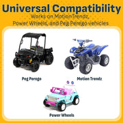 Imagine endless adventures and non-stop fun for your little one’s favorite ride-on car or truck. The secret to keeping their journey rolling smoothly? Our Universal Battery Maintainer for Ride-On Toys – an innovative, fast, and safe charger designed to power up the most beloved children’s ride-on vehicles from leading brands such as Power Wheels, Peg Perego, Motion Trendz, and Schumacher. Whether your child races around the backyard or takes a casual drive through imaginative landscapes, this battery maintainer is the ultimate sidekick, ensuring their ride-on toy is always ready for action. Say goodbye to long waits and dead batteries, and say hello to more playtime, more smiles, and more memories. Why This Universal Battery Maintainer is a Must-Have for Every Parent and Gift-Giver We understand that when it comes to children’s ride-on cars and trucks, the battery life can make or break the day’s excitement. This universal charger isn’t just any battery maintainer – it’s a game changer for busy parents and enthusiastic kids alike. Designed to be fully compatible across top ride-on toy brands, it takes the guesswork out of charging and packs a powerful punch to juice up batteries in record time. Unmatched Compatibility and Convenience Worried about whether this charger will work with your child’s ride-on truck or car? Relax. It’s crafted with universal compatibility in mind. This means no matter if your little rider’s vehicle is a sleek sports car, a rugged off-road truck, or a classic Power Wheels model, this maintainer fits perfectly and works seamlessly. Compatible with Leading Brands: Works effortlessly with popular ride-on toys from Power Wheels, Peg Perego, Motion Trendz, and Schumacher, covering the most common 6V and 12V batteries. Automatic Voltage Detection: Intelligent technology instantly recognizes your battery type—6-volt or 12-volt—so you never have to worry about choosing the wrong setting. Supercharged Performance for Maximum Playtime We all know that kids’ energy is boundless, so their ride-on car or truck needs to keep up. Thanks to the powerful 3 Amp charging capacity, this battery maintainer charges batteries up to three times faster than conventional chargers. 3X Faster Charging: Spend less time waiting and more time letting your child cruise, race, and explore. Quick-Connect Convenience: Snap on any of the three included connectors in seconds — no complicated setup, no fuss. Intuitive LED Status Alerts Keep You Informed Forget the uncertainty of guessing when your battery is ready. This charger features clear, easy-to-read LED indicators that visually communicate the charging progress. Know exactly when the battery is: Charging: Watch the lights glow as power flows into the battery. 80% Charged: Anticipate your child’s next ride with a friendly alert. Fully Charged: Feel confident that the battery is topped off and ready for the next adventure. Safety Comes First – Reverse Hook-Up Protection Safety is paramount when it comes to children and their toys, and this battery maintainer has you covered. A built-in reverse hook-up protection ensures that if the clamps are connected incorrectly, charging stops immediately, preventing damage and providing peace of mind. Benefits That Parents and Kids Will Love Extend the Joy: Faster and reliable charging means your child’s ride-on car or truck spends more time on the move and less time tethered to a charger. Hassle-Free Charging: Automatic voltage detection and quick-connect features make powering up a breeze, even for busy parents. Peace of Mind: The LED status lights keep you informed, so you never have to second guess the battery’s condition. Durability You Can Trust: Designed for consistent use, this battery maintainer withstands daily charging cycles, helping your child’s ride-on vehicle stay ready for fun. Perfect for Gift-Givers Looking to Delight Know a child who adores their ride-on truck or car? This universal battery maintainer is an exceptional gift that shows you care about keeping their adventures alive and thriving. It's a practical, thoughtful accessory that transforms the way kids experience their ride-on toys, enhancing every ride with uninterrupted excitement. Specifications at a Glance Charging Current: 3 Amps for rapid battery charging Voltage Compatibility: Automatically detects and charges both 6V and 12V batteries Connectors: Includes three versatile connectors for quick attachment Safety Features: Reverse hook-up protection to avoid incorrect connection damage LED Indicators: Charging progress, 80% charged, and fully charged alerts Recommended Age Range: Ideal for ride-on toys suitable for children ages 3 to 7 Bring the Adventure Back to Life Don’t let a drained battery pause your child’s ride-on fun. With the Universal Battery Maintainer, you empower their imagination to run wild, powering up their cars and trucks swiftly and safely. Whether it’s a birthday gift, a holiday surprise, or just a smart purchase for your family, this battery charger is a tool that keeps joy in motion. Upgrade your child’s ride-on experience today with a charger that matches their pace — reliable, quick, and designed with safety in mind. Because every moment on their ride-on truck or car should be an adventure worth remembering.