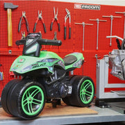 The Upgrade Your Ride: FALK Rider Racing Green Wide Wheels - Now Available! is the perfect gift for adventurous children from 2 years of age. With its beautiful graphics and realistic look, this ride-on car will bring endless joy to little ones. Equipped with large wheels, this ride-on is designed to conquer any surface, from pavement to grass. The front wheel features torsion technology, ensuring a smooth and comfortable ride while allowing for easy maneuverability. Key Features:- Suitable for children from 2 years of age- Maximum weight capacity of 30 kg- Made of high-quality, weather-resistant plastic- Ergonomic design for comfortable driving- Wide wheels for enhanced stabilityProduct Specifications:- Brand: FALK- EAN: 3016200502265- Item Weight: 4.4 kg- Type: Ride-on car (See Description for more details)- Material: Plastic- Product ID: 502KX- Age Range: From 2 years- Department: Boy/Girl- Color: GreenUpgrade your child's ride with the FALK Rider Racing Green Wide Wheels. This ride-on car is manufactured by FALK, a leading European brand known for producing high-quality pedal vehicles. In addition to this racing car design, FALK offers a wide range of licensed tractors from renowned brands such as Claas, Renault, McCormick, Kubota, Case IH, and more. All FALK vehicles are proudly made in France using only the finest materials.