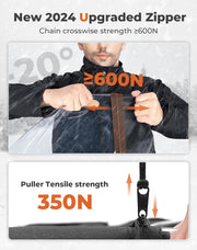 A specially designed zipper allows easy access to and from the vehicle. The zipper teeth are covered with cloth to prevent damage and maintain smoothness. The fabric covering the zipper separates most dirt and rainwater, prolonging the life of the zipper. The reflective tag design makes it easier to locate the zipper at night.