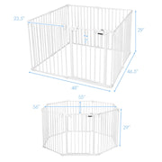 The Versatile 8-Panel Metal Play Yard and Pet Barrier with Adjustable Wall Mount is the perfect solution for keeping your little ones safe and entertained. This ride-on toy comes in a sleek white color, adding a touch of modernity to any space. Made from durable steel and nylon plastic, this play yard is built to withstand the rough and tumble of active kids.With an expanded length of 181 inches, this play yard offers plenty of room for your little ones to ride-on and play. The rectangular size measures 48 inches long, 46.5 inches wide, and 29 inches high, providing ample space for your child to explore. The octagon size measures 56 inches long, 55 inches wide, and 29 inches high, allowing for even more room to ride-on and have fun. Each single panel measures 23.5 inches long and 29 inches high, providing a secure and safe barrier for your child.Weighing in at 35 pounds, this play yard is sturdy and stable, ensuring your child's safety while they ride-on and play. The package includes 1 x 8-Panel Baby Gate and 1 x Instruction, making it easy to set up and start using right away.Key Features:- Durable steel and nylon plastic construction- Sleek white color adds a modern touch- Expanded length of 181 inches for plenty of room to ride-on and play- Rectangular size of 48 inches long, 46.5 inches wide, and 29 inches high- Octagon size of 56 inches long, 55 inches wide, and 29 inches high- Single panel size of 23.5 inches long and 29 inches high- Weighs 35 pounds for stability and safety- Package includes 1 x 8-Panel Baby Gate and 1 x Instruction for easy setupSpecifications:- Brand: Costway- Color: White- Type: GateThe Versatile 8-Panel Metal Play Yard and Pet Barrier with Adjustable Wall Mount is the ultimate ride-on toy for your little ones. With its sturdy construction, ample space, and easy setup, this play yard is sure to provide hours of fun and entertainment. So why wait? Get your child's adventure started today!