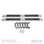 Westin R7 Boards feature oversized step pads and OE style traction grooves. R7 Boards are sold in complete kits that include: Driver and passenger-side boards vehicle specific mount kit and come with injection molded bracket covers for an extra clean look. R7 Boards are available in polished stainless steel backed by a lifetime warranty and black powder coated aluminum backed by a 3-year warranty.