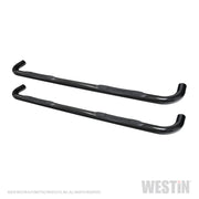Westin(TM) E-Series Nerf Bars are made of 3in. diameter round tubing and are vehicle specific designs. Step design and mounting technique varies by application (mounting kit included). They feature recessed area mounted step pads unique to E-Series Nerf Bars feature the Westin(TM) brand name and are UV resistant.