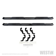 Westins Pro Traxx 4 Oval Nerf Step Bars feature a 4in. oval tube with a heavy-duty step pad that provides a wider and more secure step area. They feature 30 factory style bends that have seamless domed ends so there are no end-caps or exposed bolt heads. Applications are bolt-on installation.