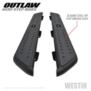 Westins Outlaw Nerf Step Bars offer the perfect balance between function and strength resulting in the ultimate rugged look designed to last and impress. Engineered to fit tightly against rocker panels, the Outlaw Nerf Step Bars provide a solid fit and superb protection while simultaneously improving vehicle cab access. Whether you are an avid overlander or simply an off-roader, rest assured you will be safely stepping into your vehicle with a 16 gauge steel coarse step surface and 2 in. diameter tubing. Featuring bolt-on installation, an e-coated base coat and textured black powder coat top finish, Westins Outlaw Nerf Step Bars are the ideal match for the toughest of conditions.