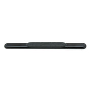 Saddle mounted step pad. Molded oval end caps. Features cradle mounted tubes and no drill installation. Black powder coated mild steel finish. 3 year warranty.