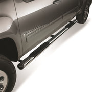 Saddle mounted step pad. Molded oval end caps. Features cradle mounted tubes and no drill installation. Black powder coated mild steel finish. 3 year warranty.