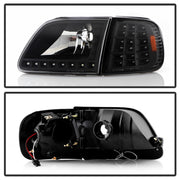 xTune Ford F150 97-03 Crystal Headlights w/ Clear LED Corners Black HD-ON-FF15097-LED-SET-BK