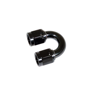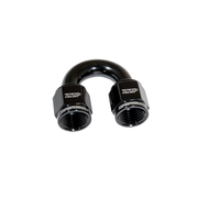 This is a -06 AN 180 degree swivel coupler fitting, -06 AN female to -06 AN female. Featuring a black anodized finish and ZZP logos. Constructed from aluminum. Rated for all types of fuel including E85.