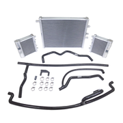 The ZZPerformance upgraded heat exchanger kit comes fully complete with a massively larger replacement center heat exchanger, larger side coolers, a full silicone line kit, and hardware. We include German style hose clamps that will not cut into the silicone, a horn relocation bracket, and a fill plug for the line that allows you to easily fill the system. Installation is straight forward plug and play; remove your bumper, remove your stock heat exchangers and lines, then install ours. Each cooler is direct bolt in and retains all factory mounting provisions and plastics.