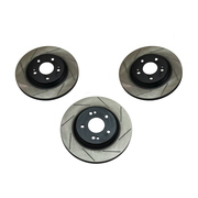 The public asked for it and ZZperformance listened. Introducing our ZZPerformance High Performance Slotted Rotors for the Polaris Slingshot. Our cast rotor blanks are blanchard ground to assure precise flatness and then machined with slots. A slotted rotor offers multiple distinct benefits under heavy braking: Brake fade, from high-temperature brake pad outgassing, can be significantly reduced, allowing gases and dust that is trapped between the pad and rotor to escape through the slots. The slots also shave off thin layers of brake pad material, reducing glazing and improving braking consistency. Slotted rotors also will not crack like drilled rotors can. Rotors are offered in sets of 3 on their own or if you would like to also greatly increase stopping power as well we also offer them in a discounted package with either Ferro Carbon or Ceramic pads made by Hawk.